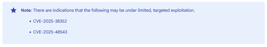 CVE-2025-38352 was a race condition use-after-free vulnerability in the Linux kernel's POSIX CPU timers implementation that was reported to have been under limited, targeted exploitation in the wild: